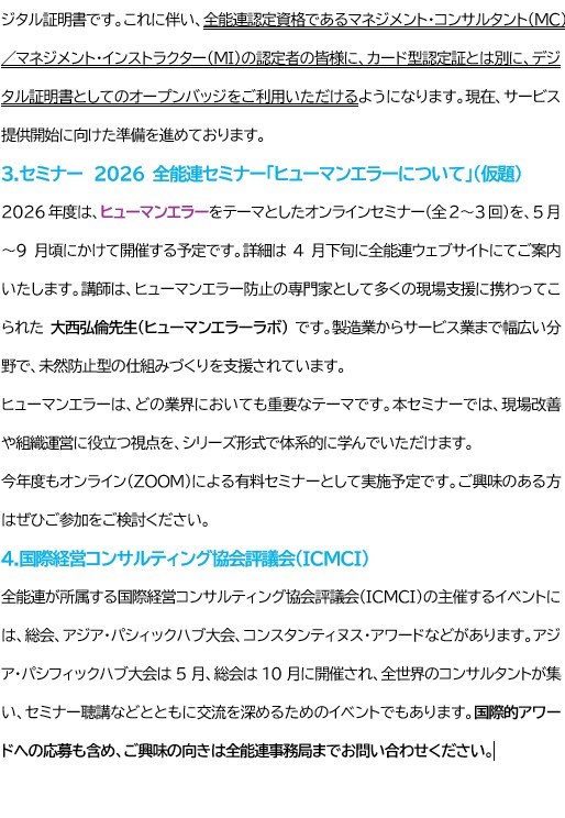 全能連会員団体の皆様には、平素より全能連の諸活動にご理解とご協力を賜り、誠にありがとうございます。年度初めに当たり、2026年度全能連の活動についてご報告いたします。